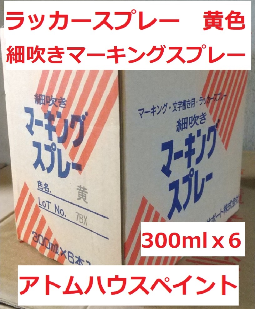 - ラッカースプレー 細拭き マーキングスプレー 黄 300ml 6本セット 建設・建築・林業等 アトムハウスペイント