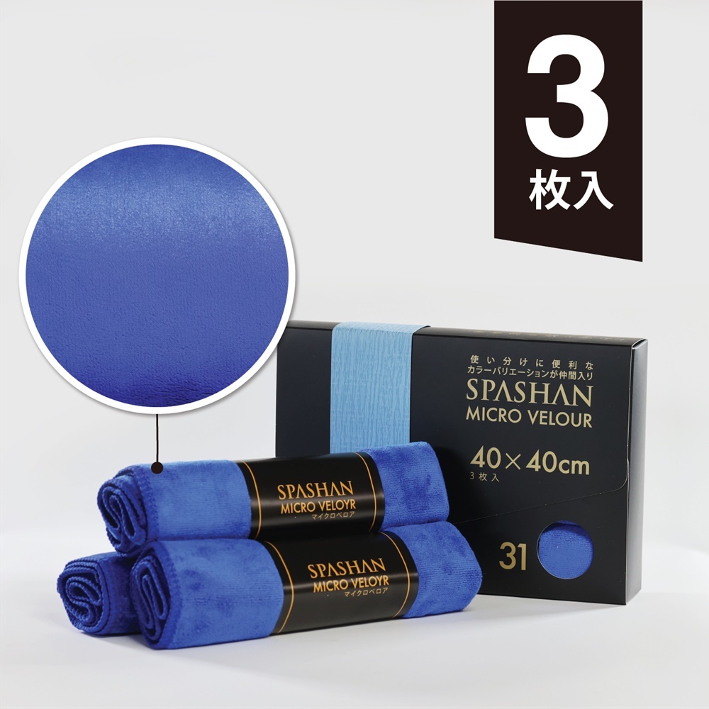 - スパシャン マイクロベロア 青 3枚入り 40×40cm 洗車用タオル キズ防止 洗車用クロス 内装パーツ ナビモニター WAX拭き取り