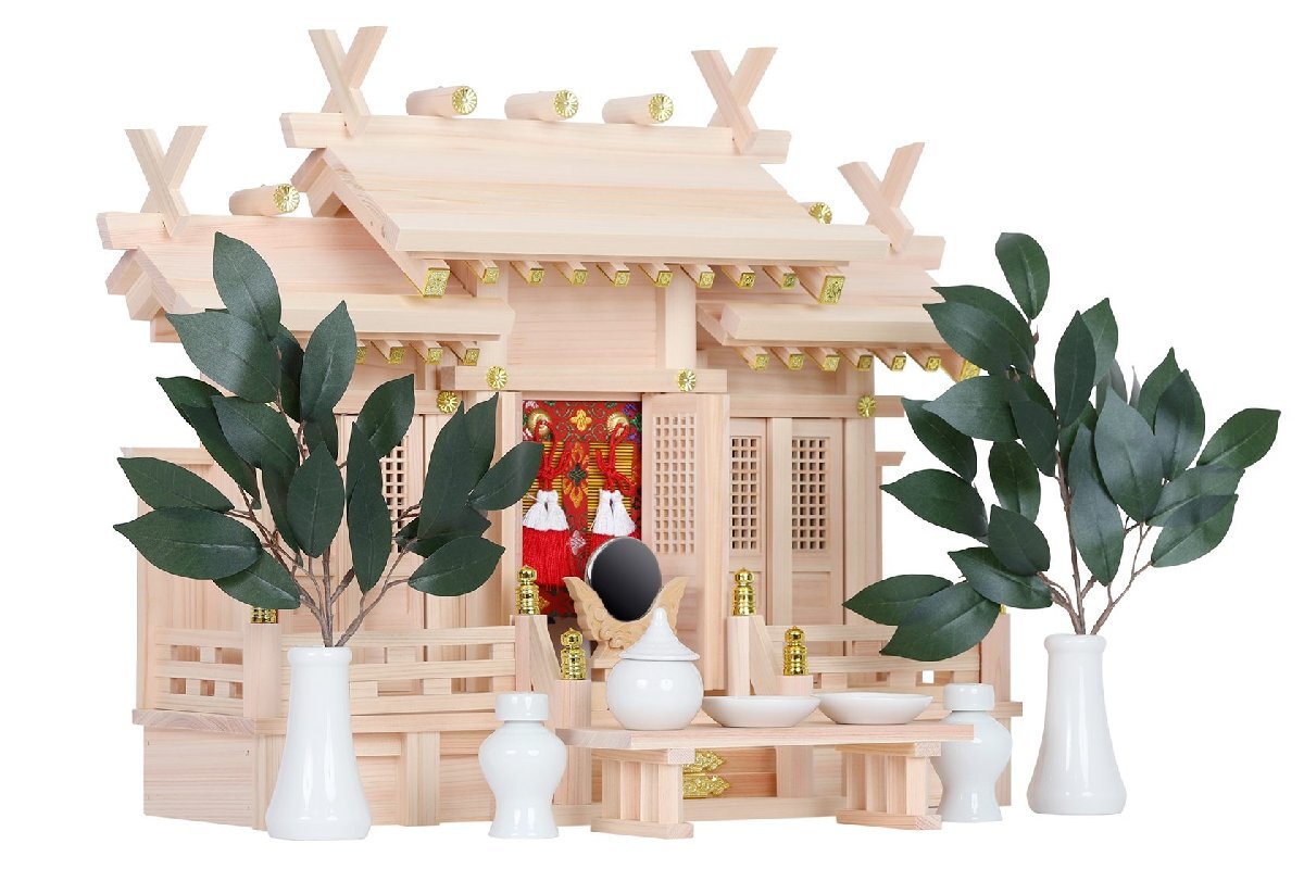 - 屋根違い三社■宝来神宮■御簾と格子扉■限定数■屋根違い三社■宝来神宮■御簾と格子扉■中型 神棚セット■美しい「岐阜桧」