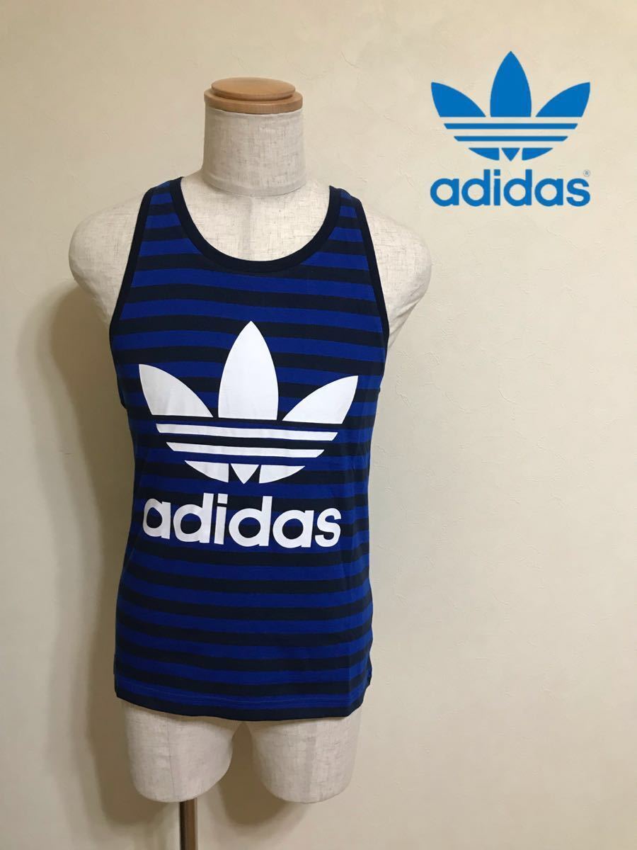 - 【新品】 adidas originals STRIPED TANK アディダス オリジナルス ボーダー トレフォイル ビッグロゴ タンクトップ サイズM ネイビー 青