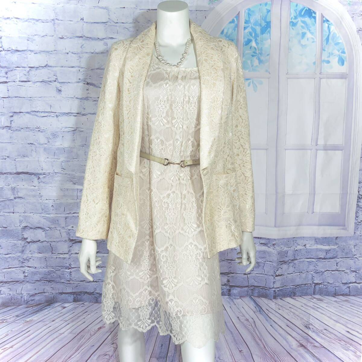 > Bou jeloudゴールドベージュレースジャケット チュールレースベージュワンピース セットアップ 2点セット 9号 M-L
