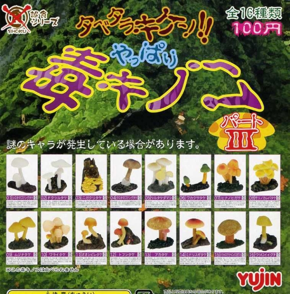 > ◆誤食 タベタラキケン!! やっぱり毒キノコ パートⅢ…全16種+カオモジダケ+台紙 (ドクツルタケ/アカタケ/ワライタケ/他) ミニチュア 茸