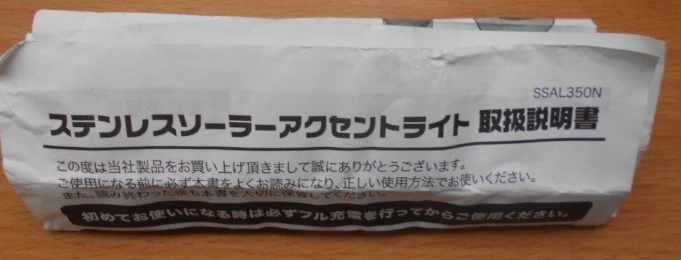 - 取扱説明書 ステンレスソーラーアクセントライト 中古 1枚