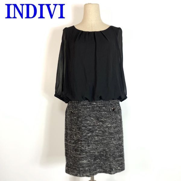 - インディヴィ 切り替えシアードッキングワンピースブラックINDIVI 袖シアー シフォントップス 切り替えデザイン 38 C9941