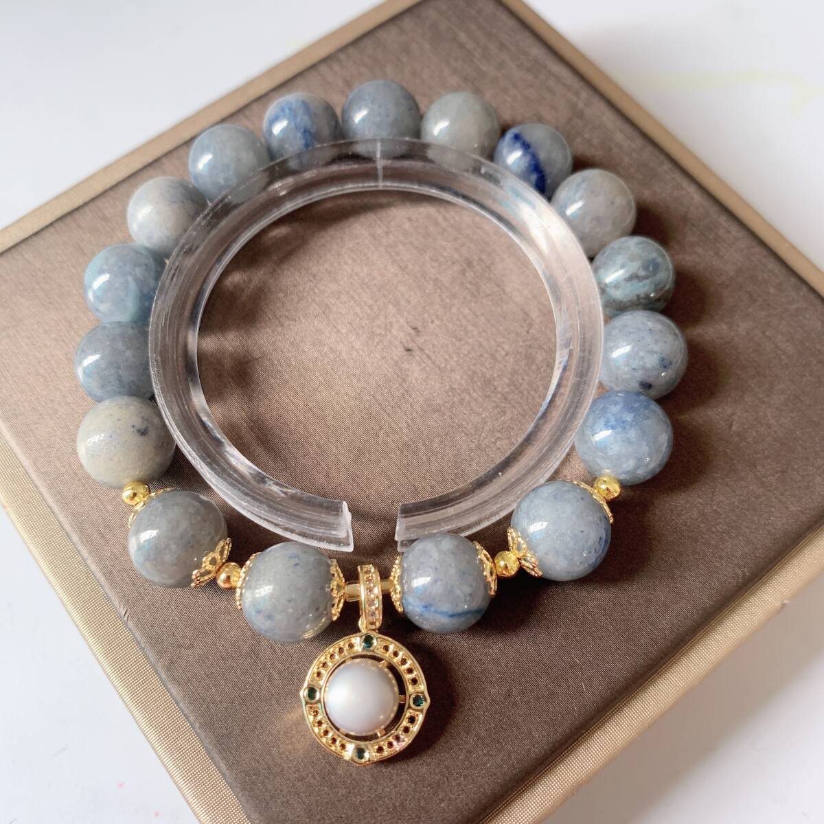 > ◇ソーダライト+真珠1粒◇ブレスレット◇パワーストーン◇天然石◇巾着袋付き◇プレゼントにも 016B52403