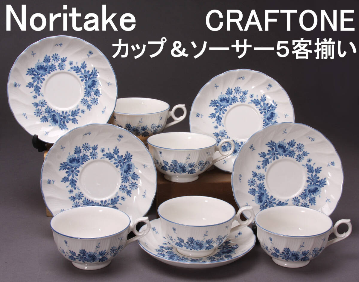 - Noritake ノリタケ CRAFTONE クラフトーン 青い花柄 カップ&ソーサー5客セット KA-7521