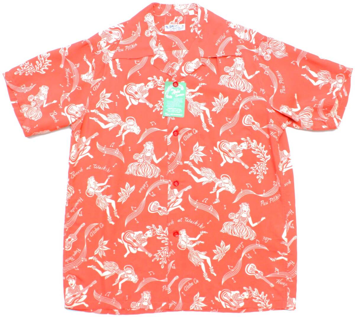 - YHS23東洋Mハワイ フラガール 音符 ギターKA LAEカ.ラエHAPA HAOLE HULAハパ.ハオレ.フラ 半袖 アロハシャツSUN SURFサンサーフSS35656