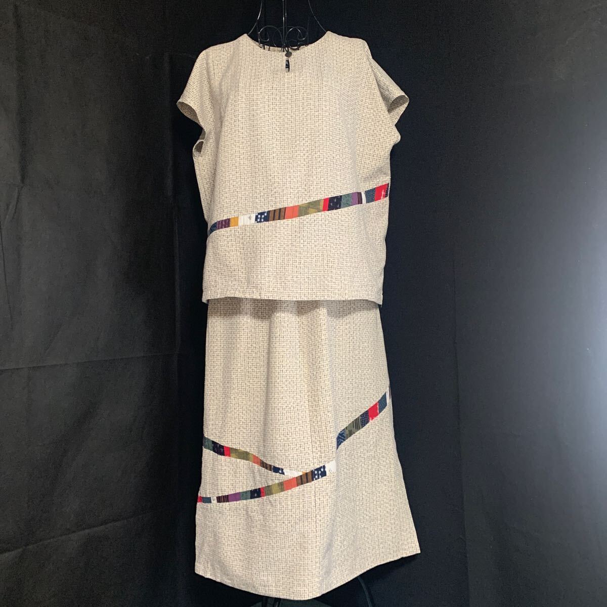 > 儀右エ門 GIEMON ギエモン 久留米絣 セットアップ 上下セット 藍染 生地 リメイク 素材 古布 型染め 絣 パッチワーク カスリ かすり (9835)