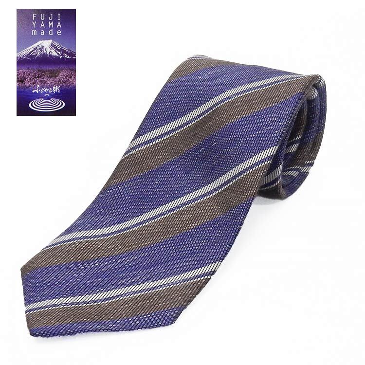 - ふじやま織 ネクタイ シルク麻 青紫系/ストライプ 日本製 シルクリネンネクタイ メール便OK FJ-L48