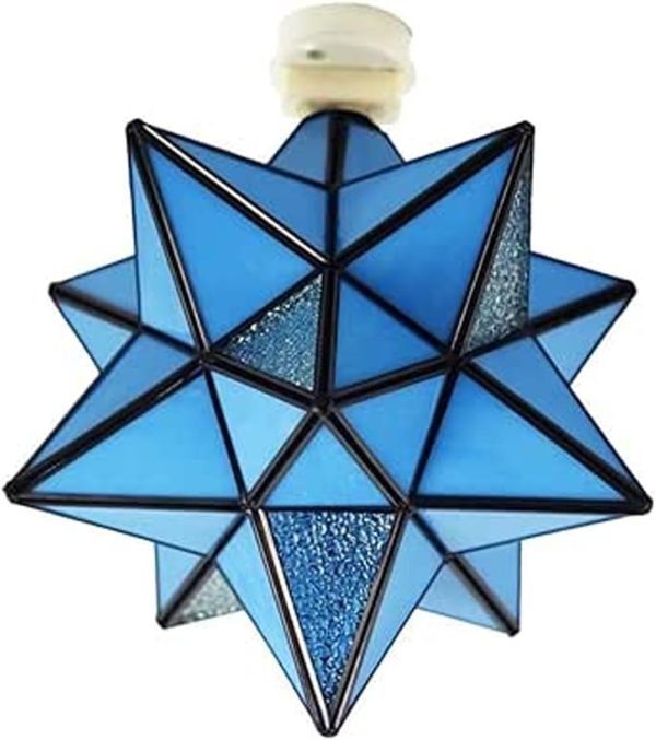 - OTD 【30cm ブルー 黒枠】ガラス スター 星 星形 黒枠 工事不要 E26口金 LED対応 天井照明 アンティーク モダン 直接引掛け式