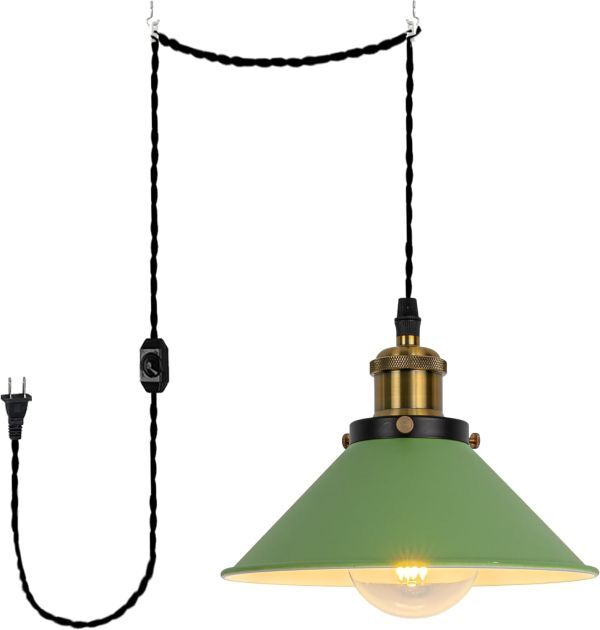 - ケビン ペンダントライト コンセント式 吊り下げライト コードに調光スイッチつき 調光対応 口金E26 電球別売り 直径22cm【グリーン