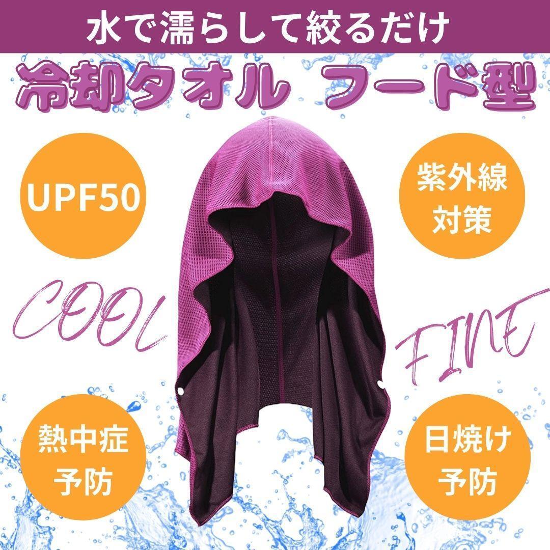- 冷感タオル 冷感 熱中症対策 フードタイプ スポーツタオル 吸水速乾 クールタオル ローズレッド