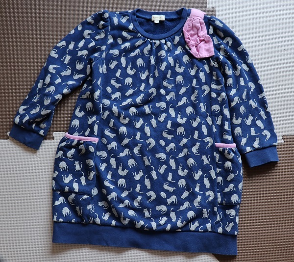 - ハッシュアッシュ120 チュニックワンピース トレーナー猫柄紺ポケットワールド