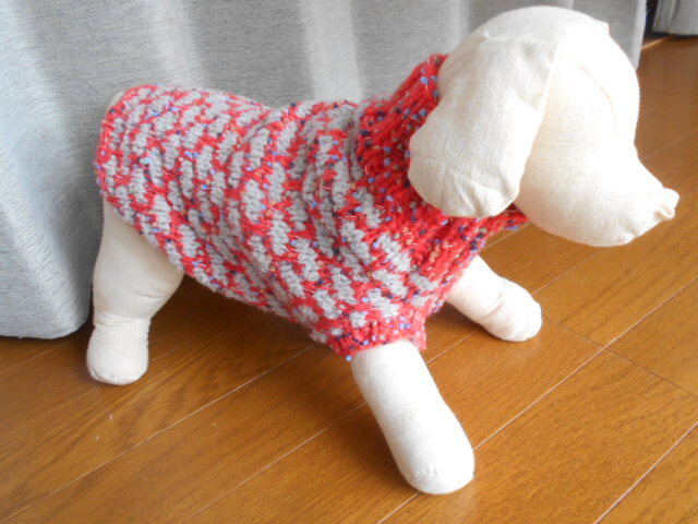 - 小型犬 アブリル AVRIL 手編みのあったかセーター レッド Sサイズ トイプー パピヨン等