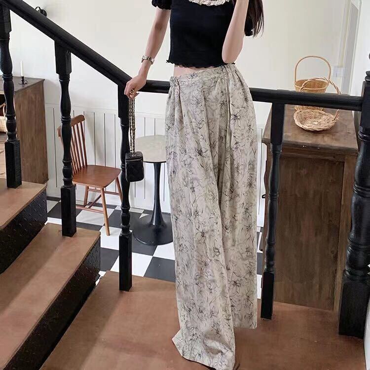 - ワイドパンツ レディース 夏 ガウチョパンツ 花柄 シフォン ハワイアン フレアパンツ ロングパンツ リゾート バギーパンツ SLTC019
