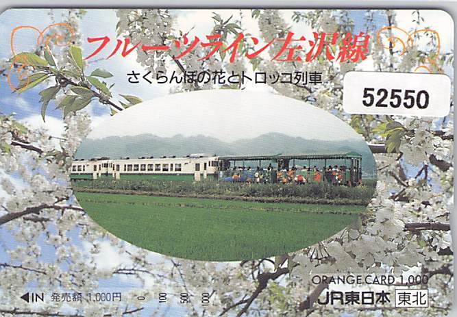 - 52550★フルーツライン左沢線 さくらんぼの花とトロッコ列車 JR東日本 東北 オレンジカード★