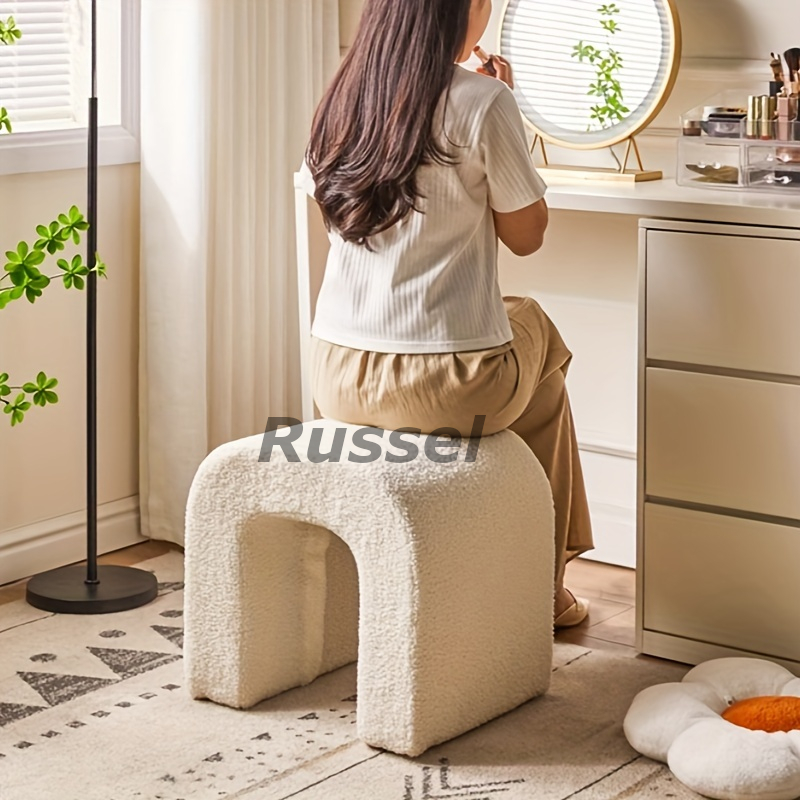- ドレッシング チェア ふわもこ コンパクト おしゃれ かわいい インテリア 北欧 ドレッサー チェア スツール オットマン 化粧 椅子 白 4-7