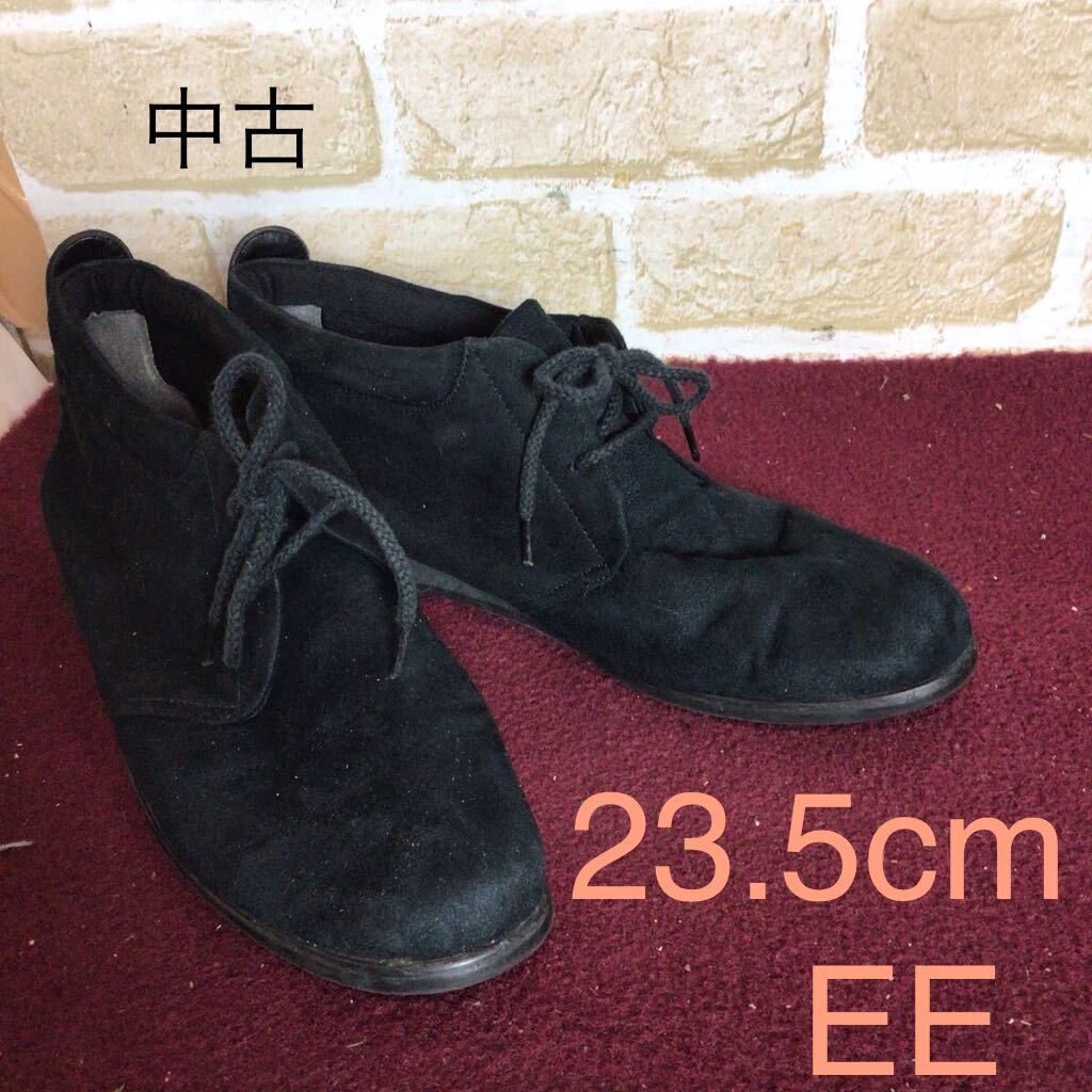 - 【売り切り!送料無料!】A-376 ショートブーツ!黒!ブラック!23.5cm EE!スエード!チャッカブーツ!おしゃれ!柔らかい素材!中古!