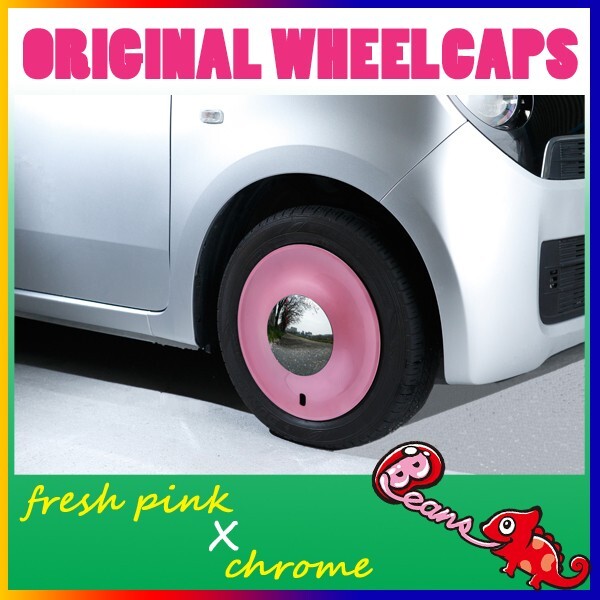 > フレッシュピンク×クローム Beans・ビーンズ/14インチホイールキャップ ホイールカバー (スペシャルカラー)