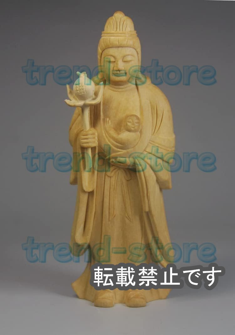 - 仏像 鬼子母神 木製 彫刻仏像・木彫り仏像・手彫り仏像祈る 厄除け(高さ12.5cm)