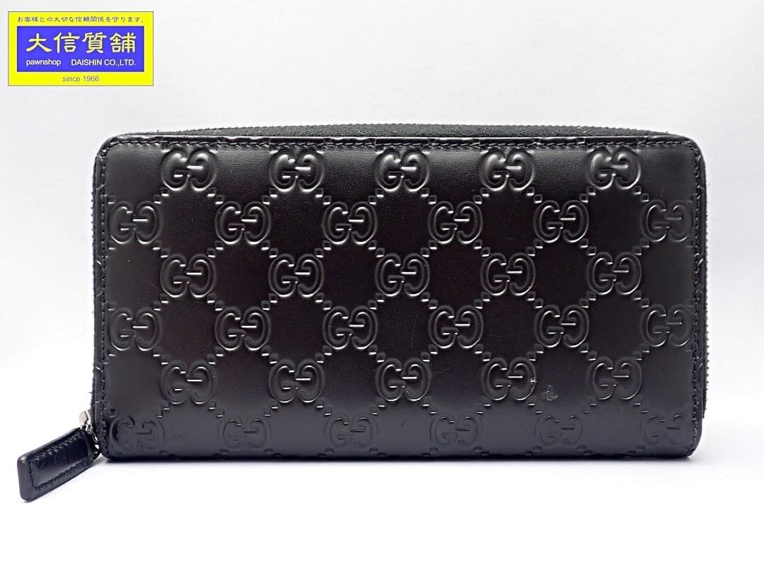 - GUCCI グッチ グッチシマ シグネチャー ラウンドジップ ウォレット 307987 ブラック 長財布 中古B+ 【送料無料】 A-8520