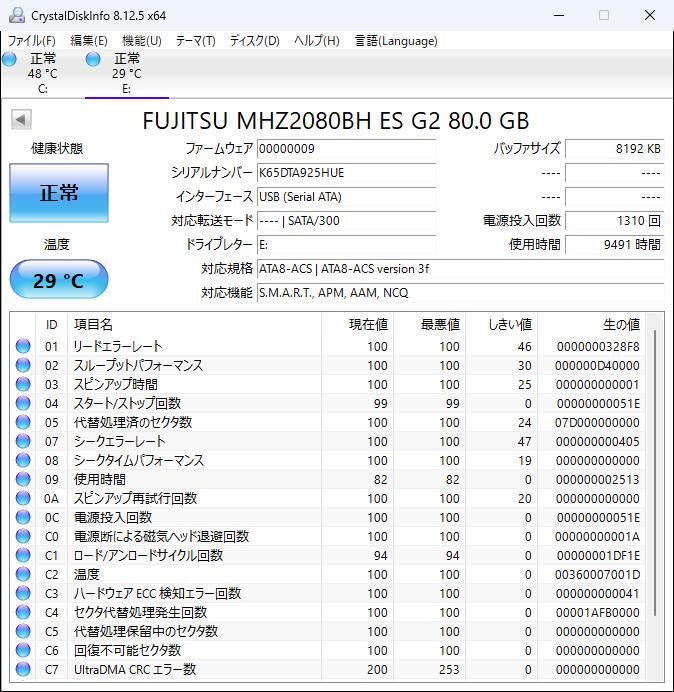 - FUJITSU/MHZ2080BH/ES G2/80GB/動作品
