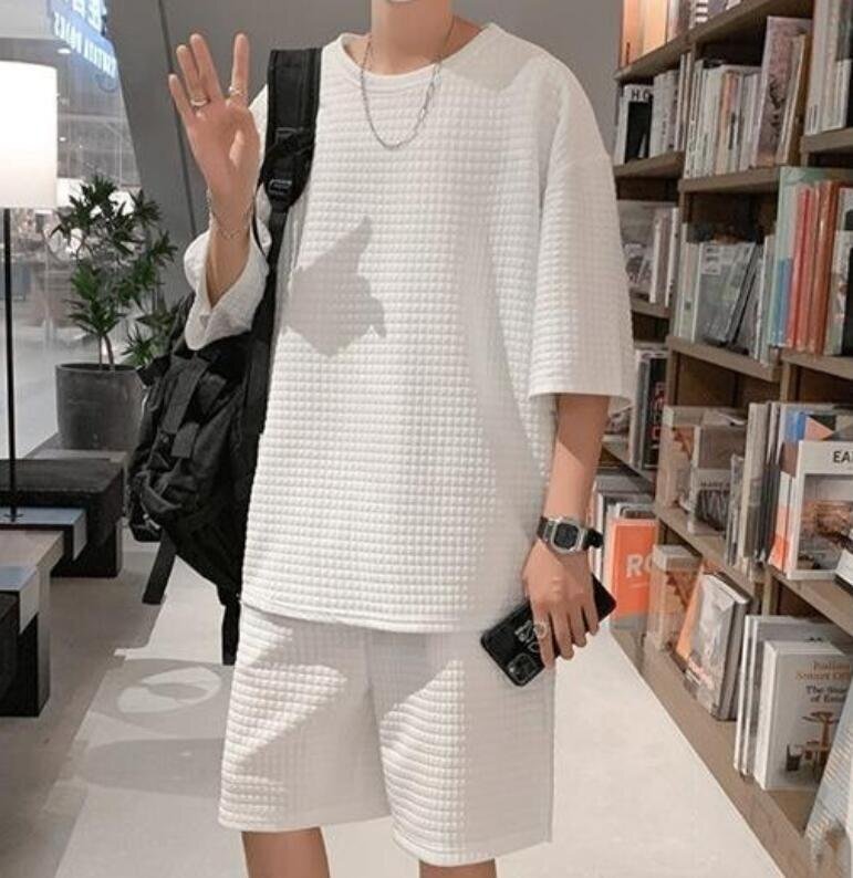 > メンズ Tシャツ ジャージ スウェット 上下セット 半袖 セットアップ ショットパンツ 短パン 運動着 ハーフパンツ ホワイト XL