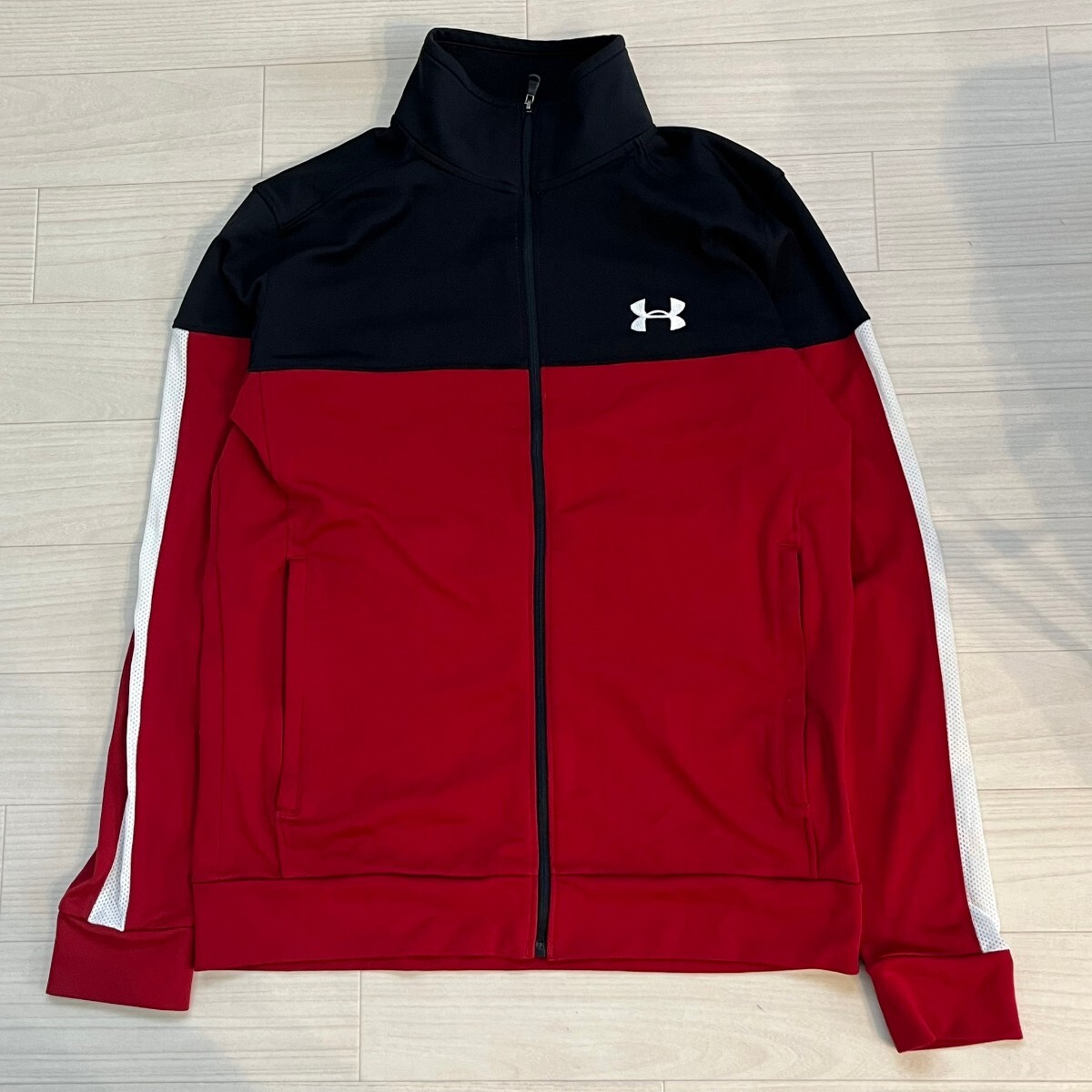 > UNDER ARMOUR アンダーアーマー ロゴマーク刺繍入り ジップアップジャケット トラックジャケットジャージ ブルゾン レッド サイズSM
