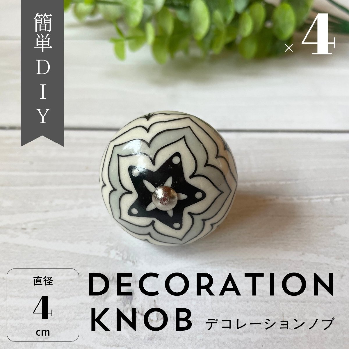 > 4点セット デコレーション ノブ スター 白×グレー 直径4cm DIY 取手 ツマミ 引出 素材 材料