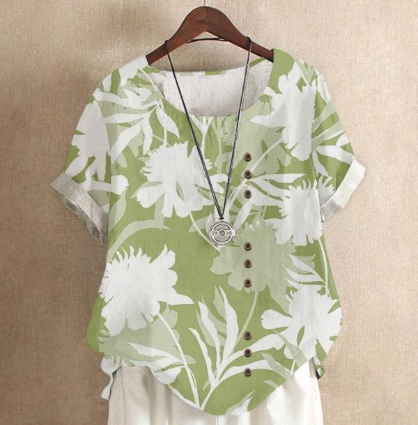 - 新品 人気推薦 /シャツ ブラウス トップス レディース チュニック 半袖 シャツ 花柄 トップス ゆったり 大きいサイズ 綿麻 リネン /4