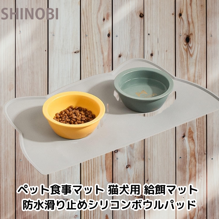 - ペット食事マット 猫犬用 44x25cm 給餌マット ペットボウル用の防水滑り止めシリコンボウルパッド 猫用給餌パッド グレー