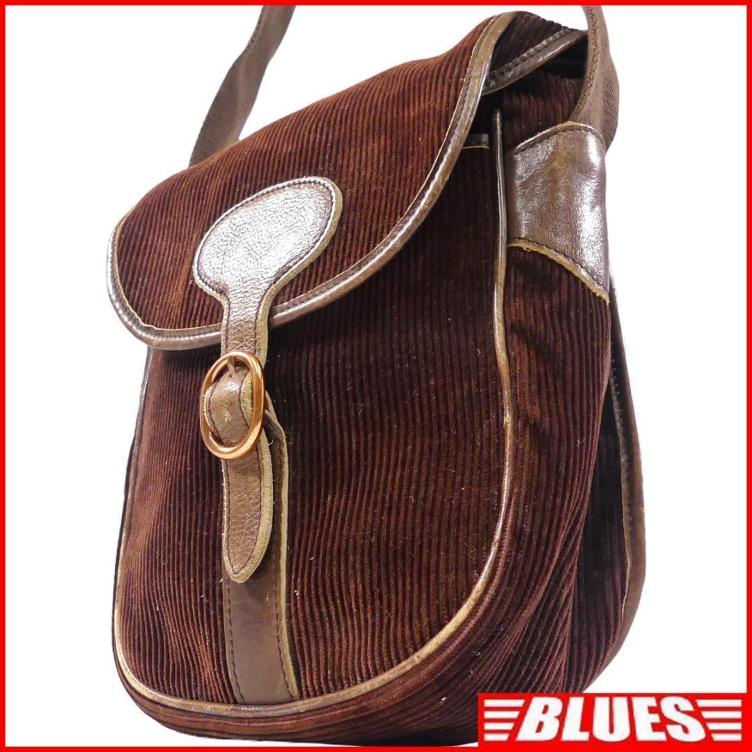 - 即決★イタリア製 Orobianco★レザーコンビショルダーバッグ オロビアンコ メンズ レディース 茶 コーデュロイ 本革 肩掛けカバン 斜め掛け
