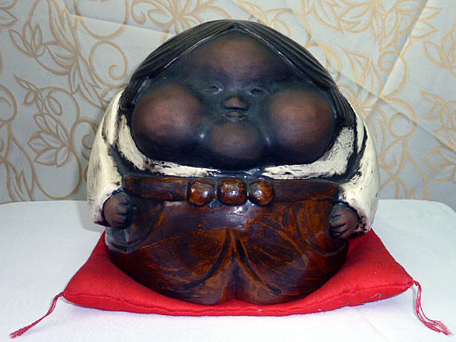 - No84 未使用 レア物 オブジェ お多福 手焙り 火鉢 陶芸置物・240620