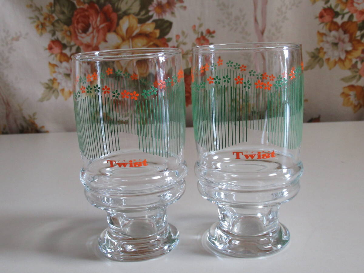 - R6 06★昭和レトロ ガラスコップ 森永乳業 ツイストグラス 2個セット タンブラーグラス レトロ