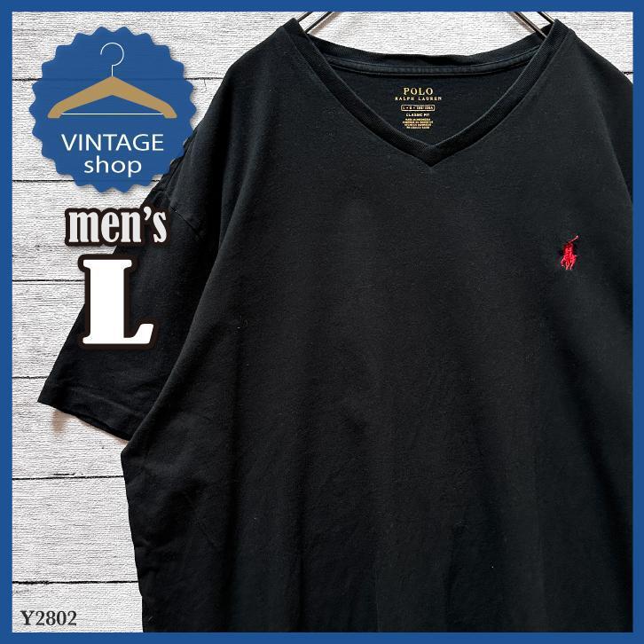- 【POLO RALPH LAUREN】古着VネックTシャツ半袖メンズLブラック