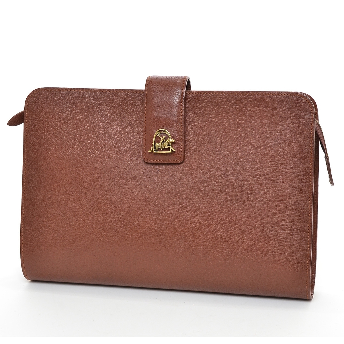 > 〇320511 RALPH LAUREN ラルフローレン ○セカンドバッグ レザークラッチバッグ メンズ ブラウン 無地