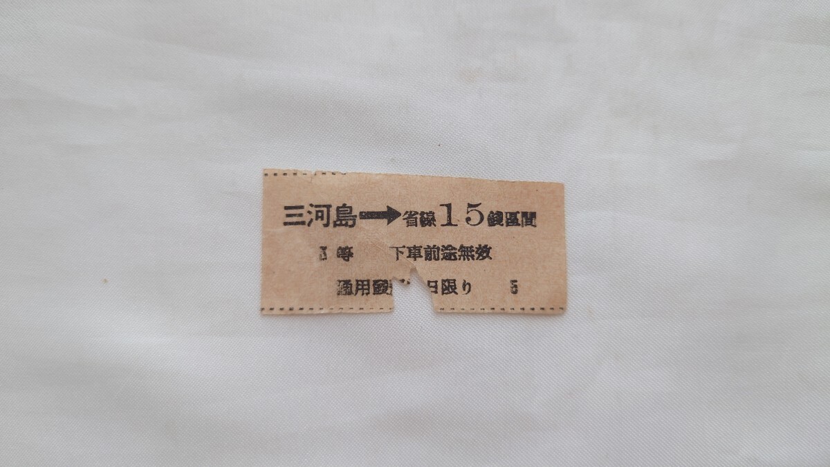 - ▼鉄道省(国鉄)▼三河島→省線15錢区間乗車券▼軟券