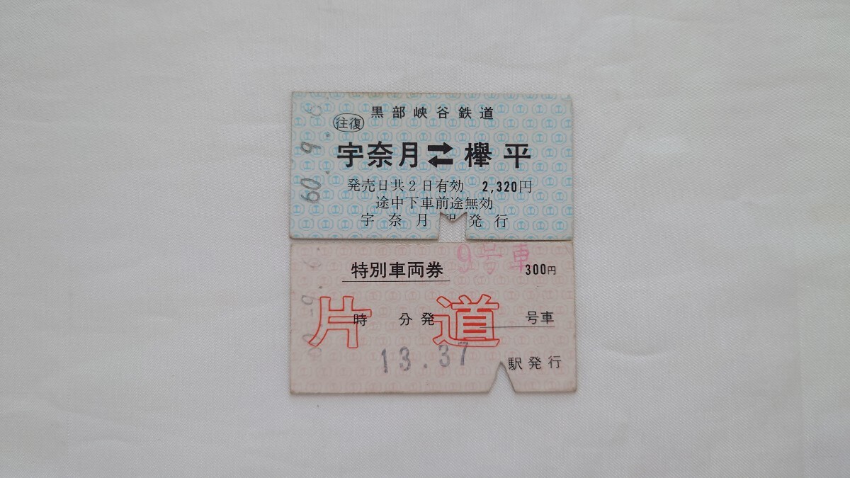 - ▼黒部峡谷鉄道▼宇奈月⇔欅平往復乗車券/特別車両券▼A型硬券2枚一括