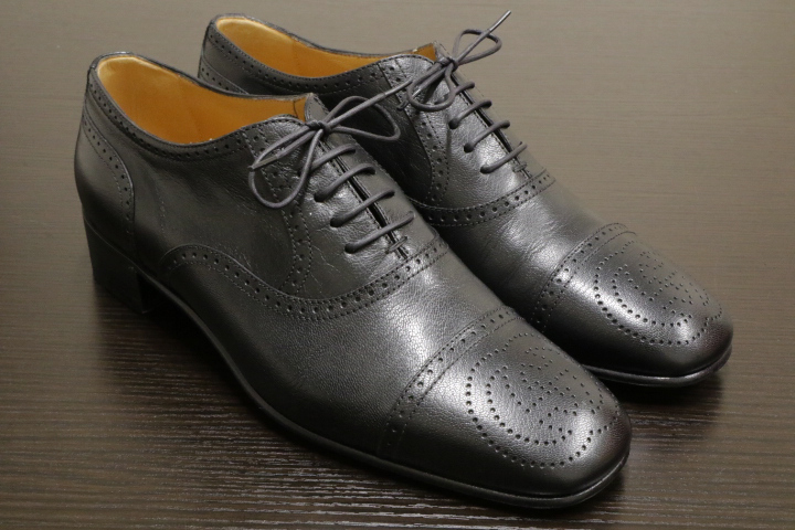 > 美脚 3センチ ヒール GUCCI ロゴ GGマーク ドレス シューズ オックスフォード フォーマル グッチ レザー 革靴 セミブローグ 黒 6.5 (25.0)