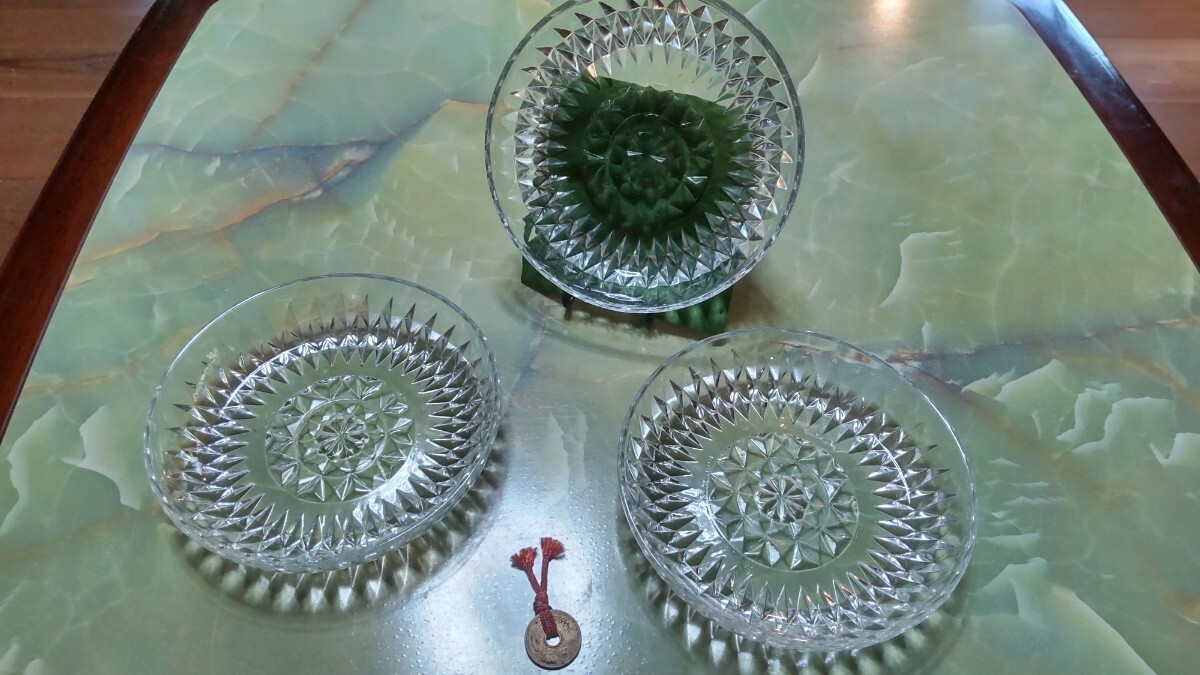 - FRANCE アンティーク ガラス小皿 3枚 サイズ[直径14㎝高さ3.3㎝重さ240g]