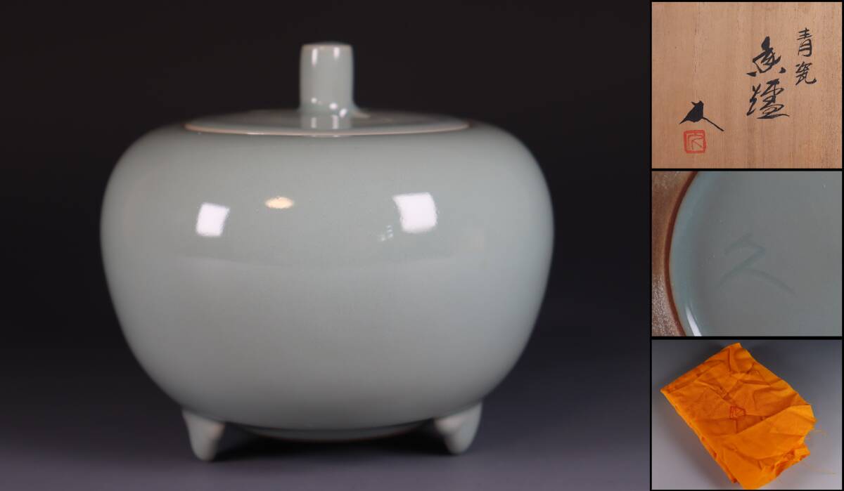 - 蔵出し品 米沢久 青瓷 三足香炉 A207