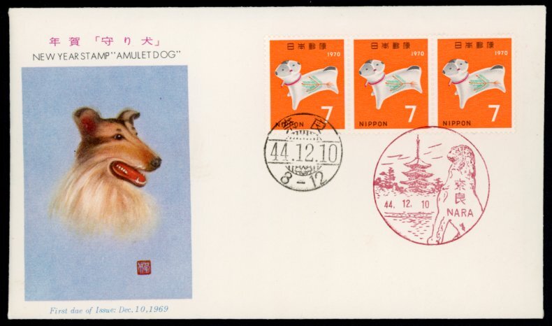 - 0521 【FDC】1970年用年賀切手「守り犬」[奈良/44.12.10/郵政弘済会]