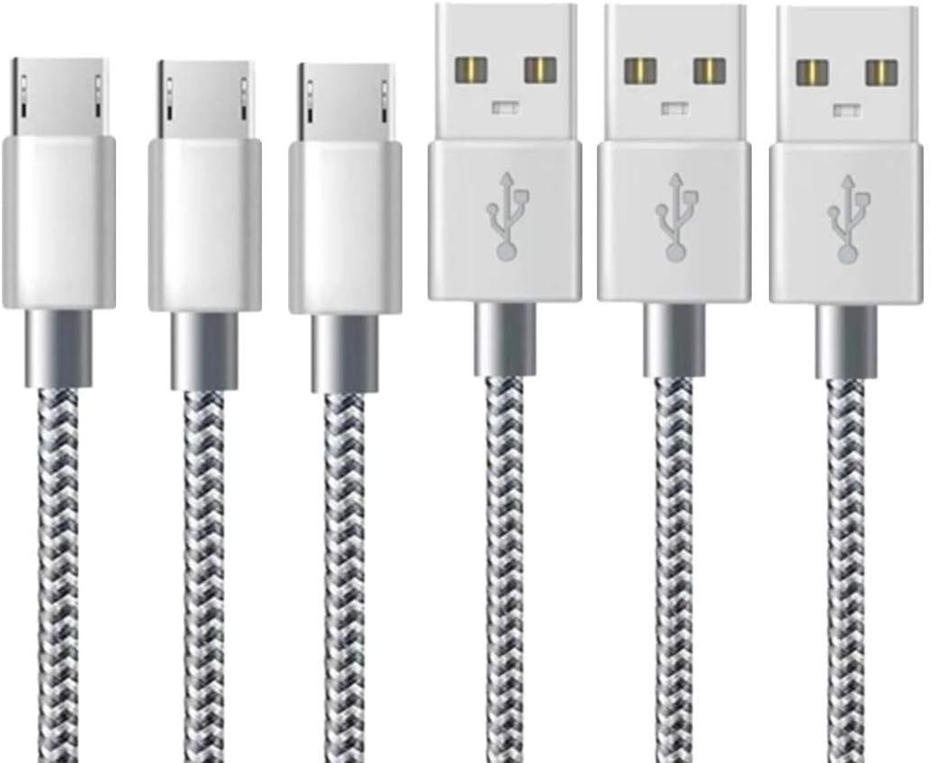 > Micro USB ケーブル【3本セット 1M】マイクロUSBケーブル 急速充電 高速データ転送 高耐久 ナイロン編み 断線防止(シルバーグレー)