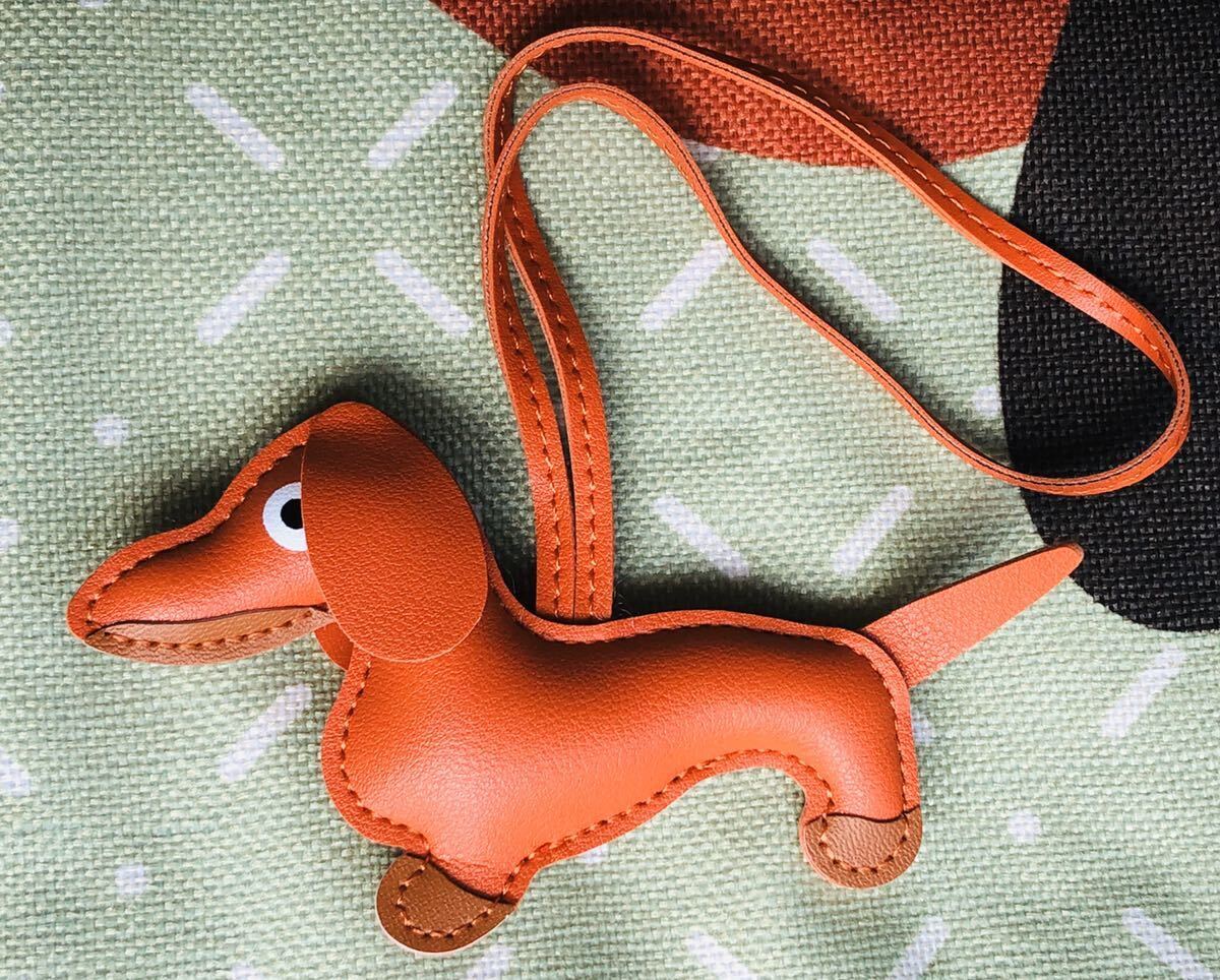 - バックチャーム 犬 ダックスフンド ダックス 皮製 チャーム アクセサリー 革 おしゃれ かわいい お揃い オレンジ