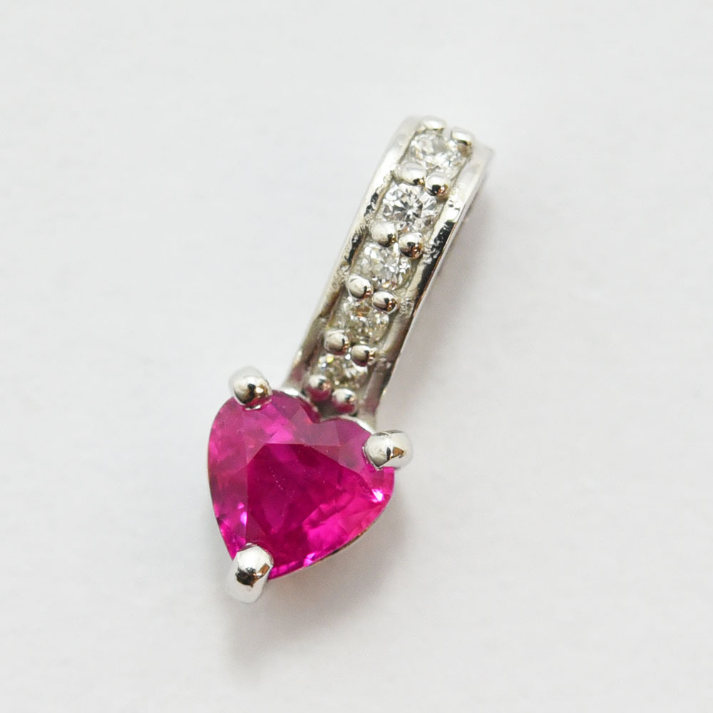 - ルビー 0.24 ダイヤモンド 0.03 ペンダントトップ ハートシェイプ K18WG 新古品 未使用 中古