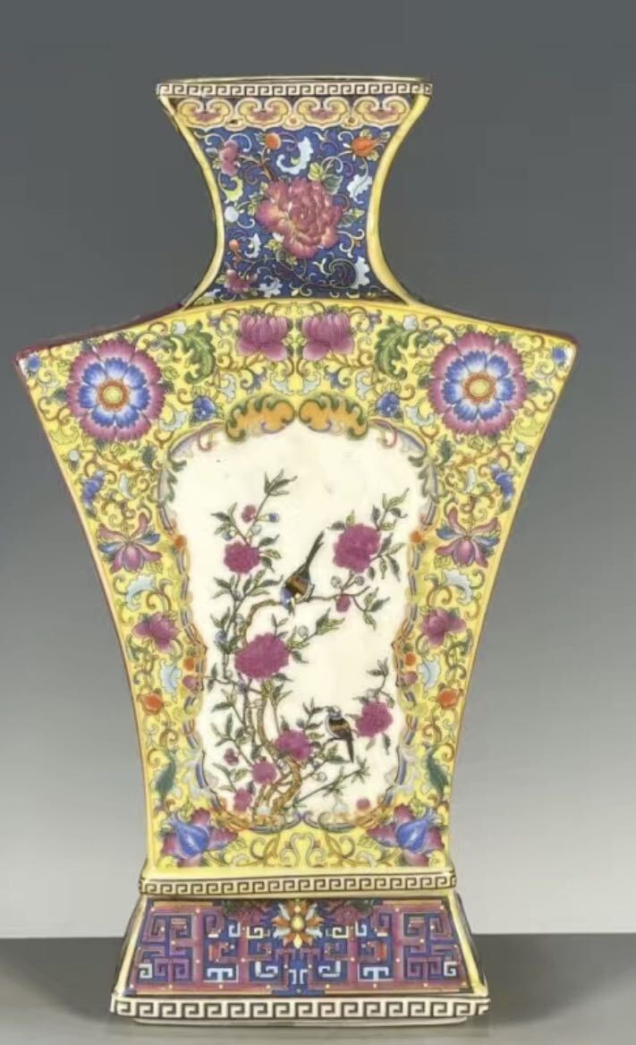 - 【伝世蔵品】中国古美術 古玩 唐物旧蔵 大清雍正年 御製 琺瑯粉彩花鳥図瓶 極細工 置物 擺件 古賞物 風水物 鎮宅 骨董品 中国骨董
