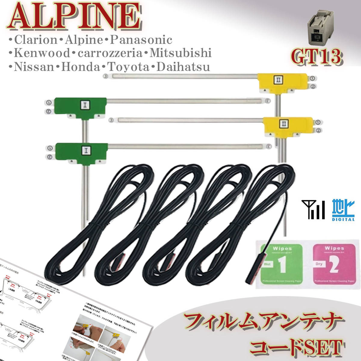 アルパイン GT13 700D 700W X800 X900 L型 フィルムアンテナコード 4本セット 地デジ ケーブル ナビ載せ替え 補修 フルセグ 配線拍卖