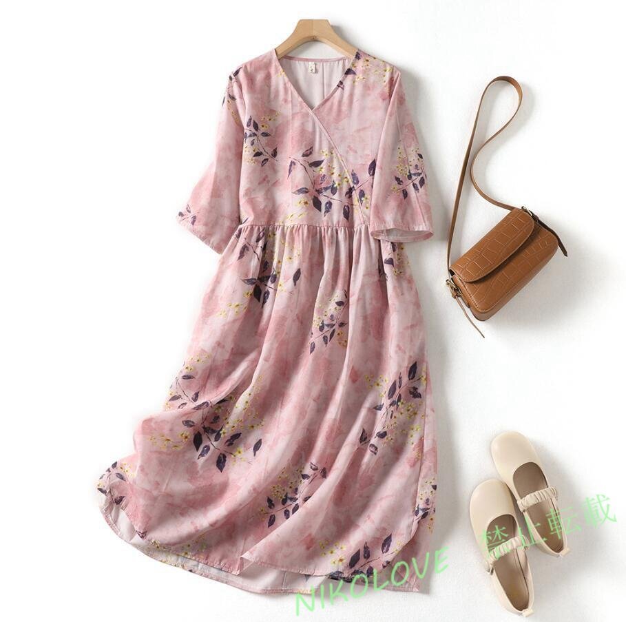- 新品 夏オシャレ ロングワンピース きれいめ プリント柄 切り替え ワンピース 半袖 マキシ丈ワンピ 大きいサイズ ミモレ丈ワンピースLG790