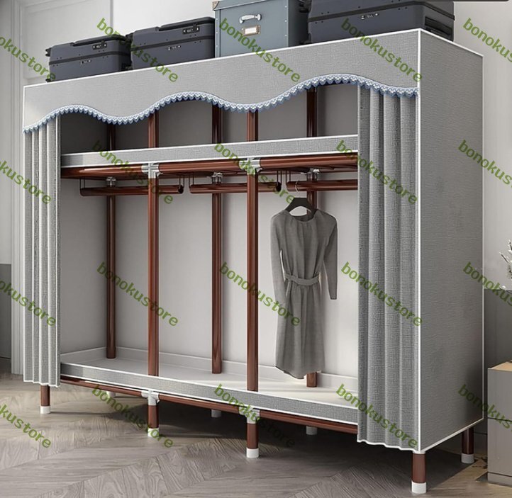 - ワードローブ カバー付き 大容量 クローゼット 磁気吸着カーテン 多機能 衣類収納ラック 洋服掛け ハンガーラック おしゃれ 頑丈 177CM B