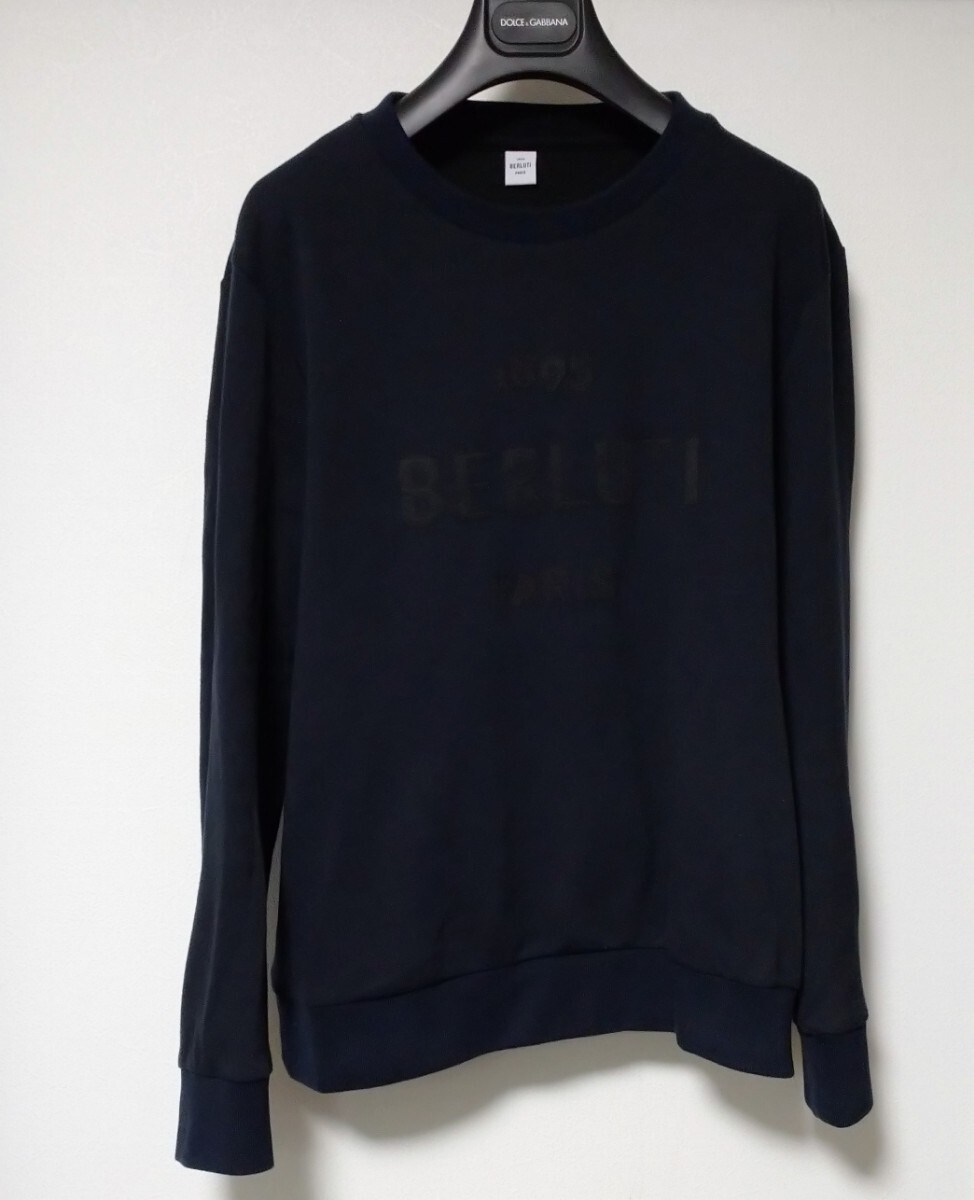 - 新品同様 ベルルッティ ロゴ入り長袖スウェット 濃紺 L